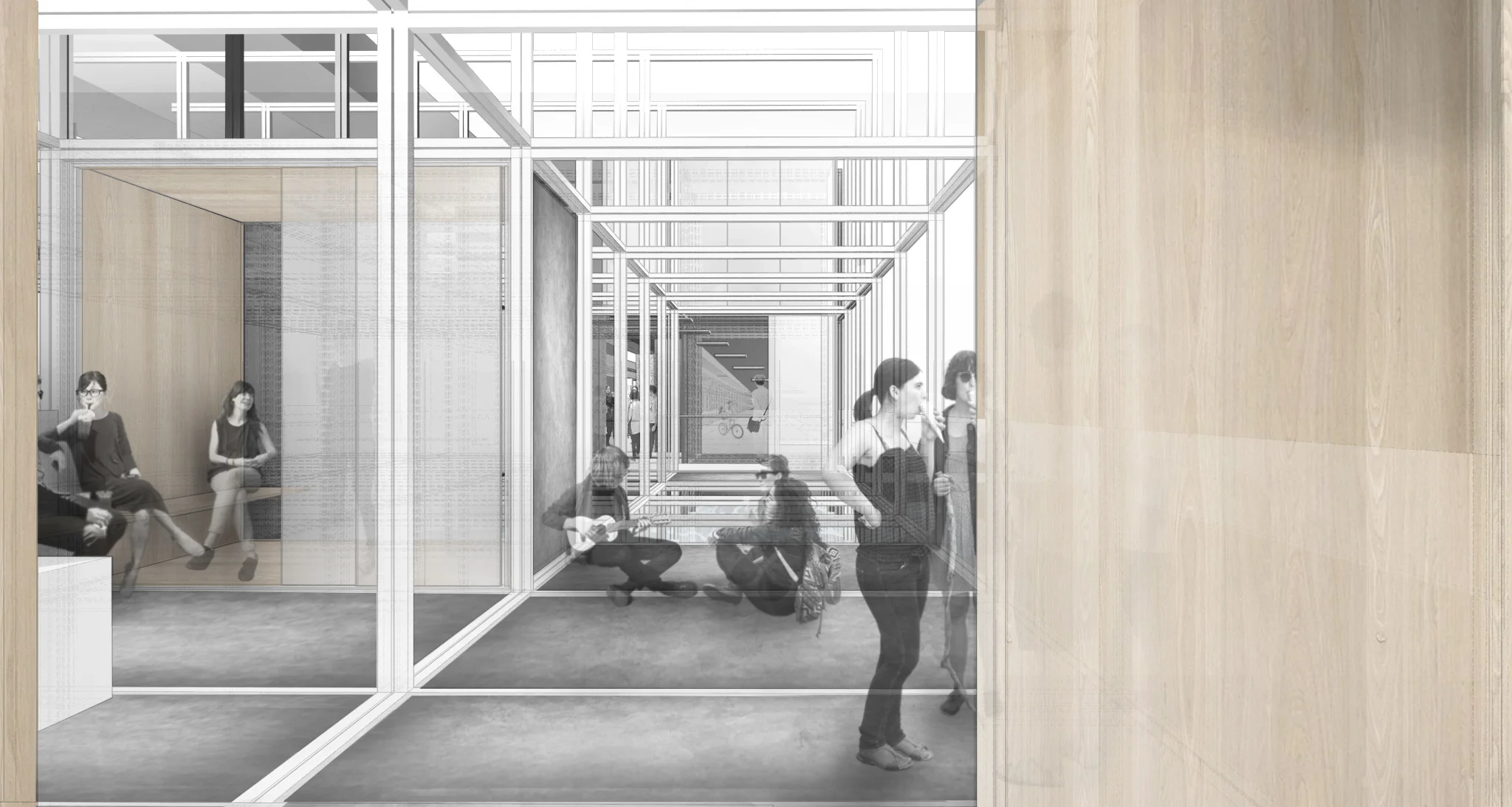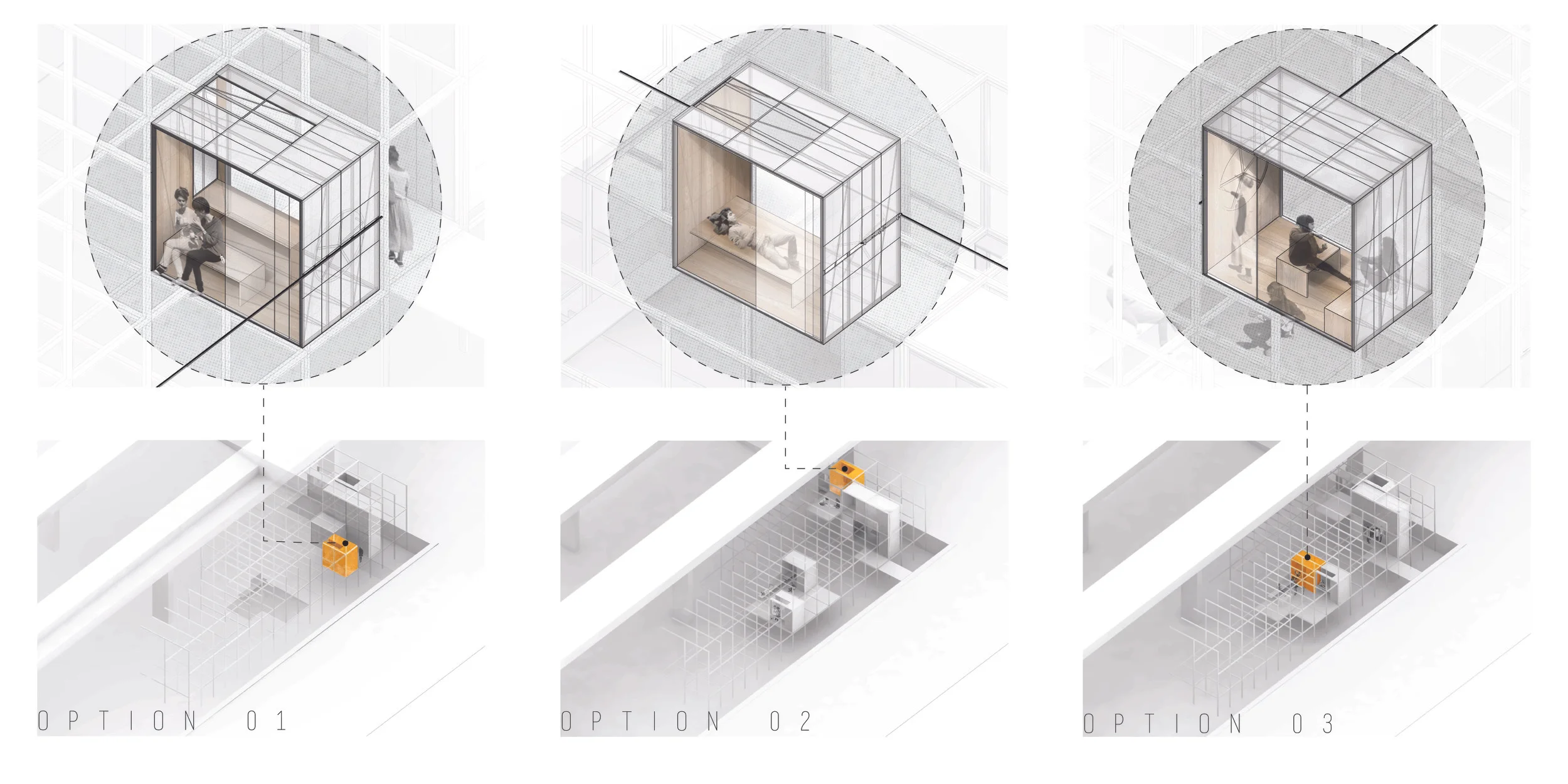 Gridspace creates a framework to facilitate community interaction and involvement in the Ørestad region. The modular system of operable pod shelters allow for user determination in how to interact with site, shelter and community. Moving within a greater superstructure, set within the canal, the pods are adaptable spaces that can both individually create private shelters and together create a larger communal public space.